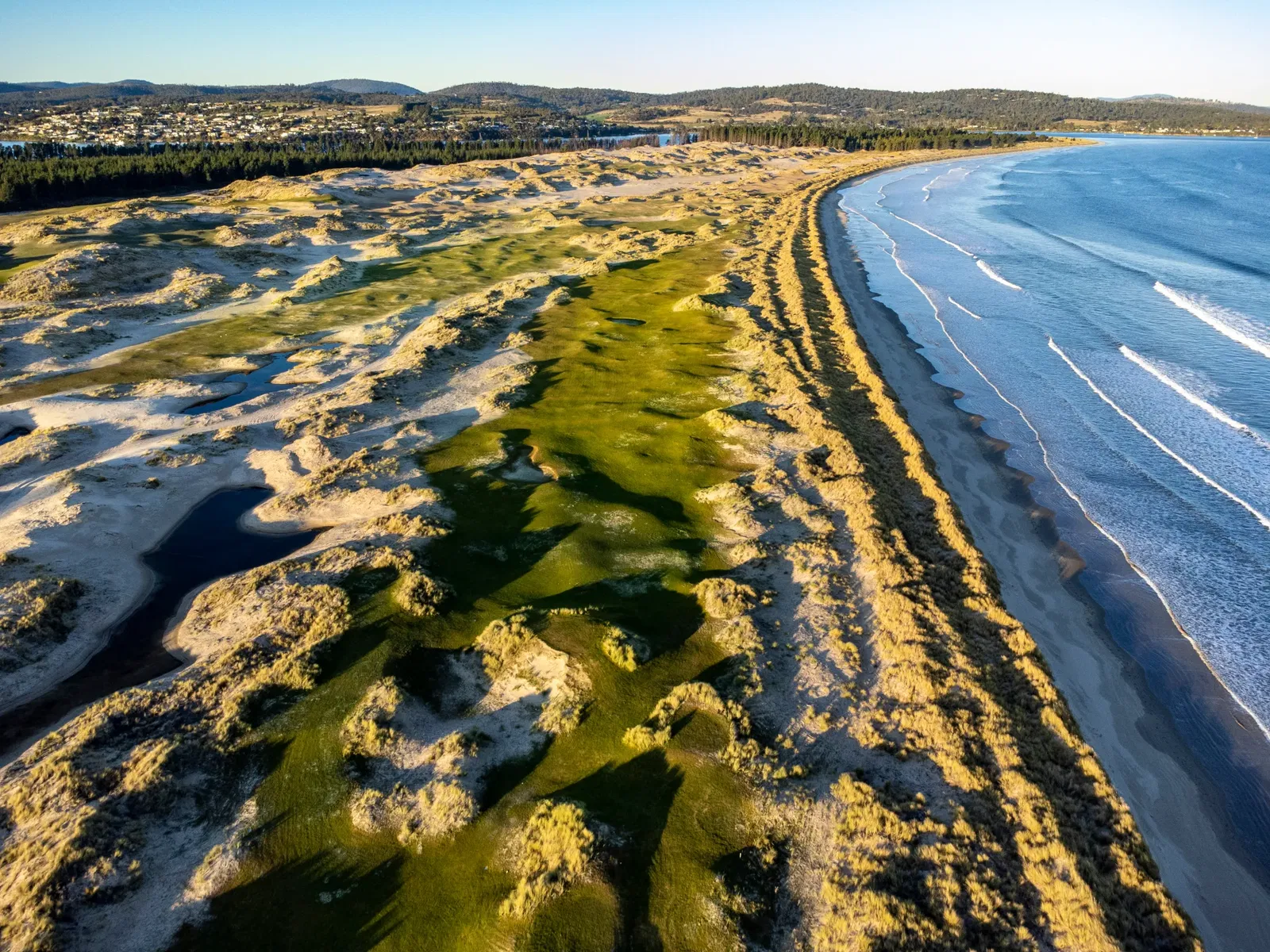 PGA Tour Professional Mathew Goggin grew up in the local area playing golf on the mainly flat course of Royal Hobart. Hitting balls along the beach, he often wondered why the heaving sand dunes on the Seven Mile Beach Peninsula were not home to golf in Tasmania. The combination of sand, spectacular views and interesting contours appeared an obvious place for a golf course.