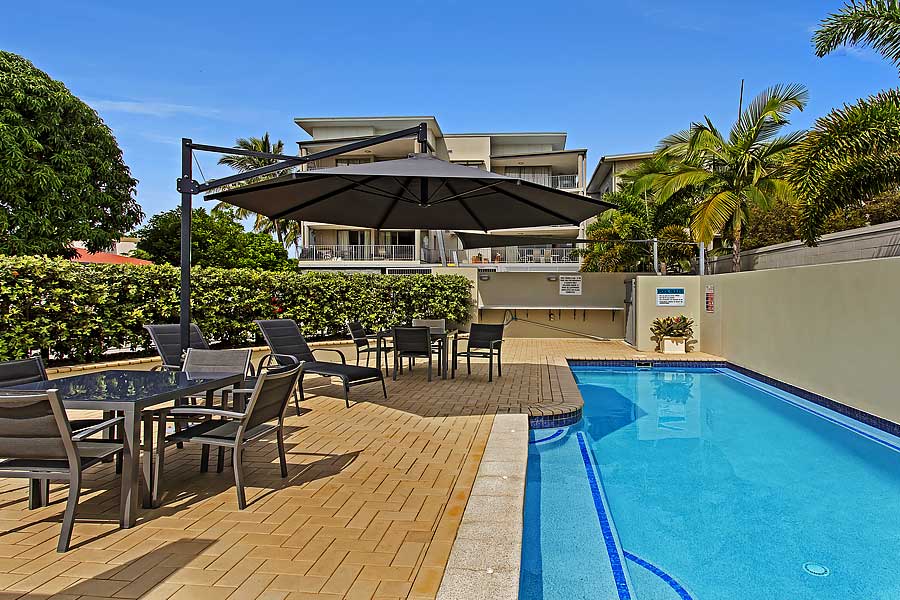 The resort-style amenities include a 10-meter saltwater pool with a spa ledge, secure undercover parking, lift access, and an on-site manager.