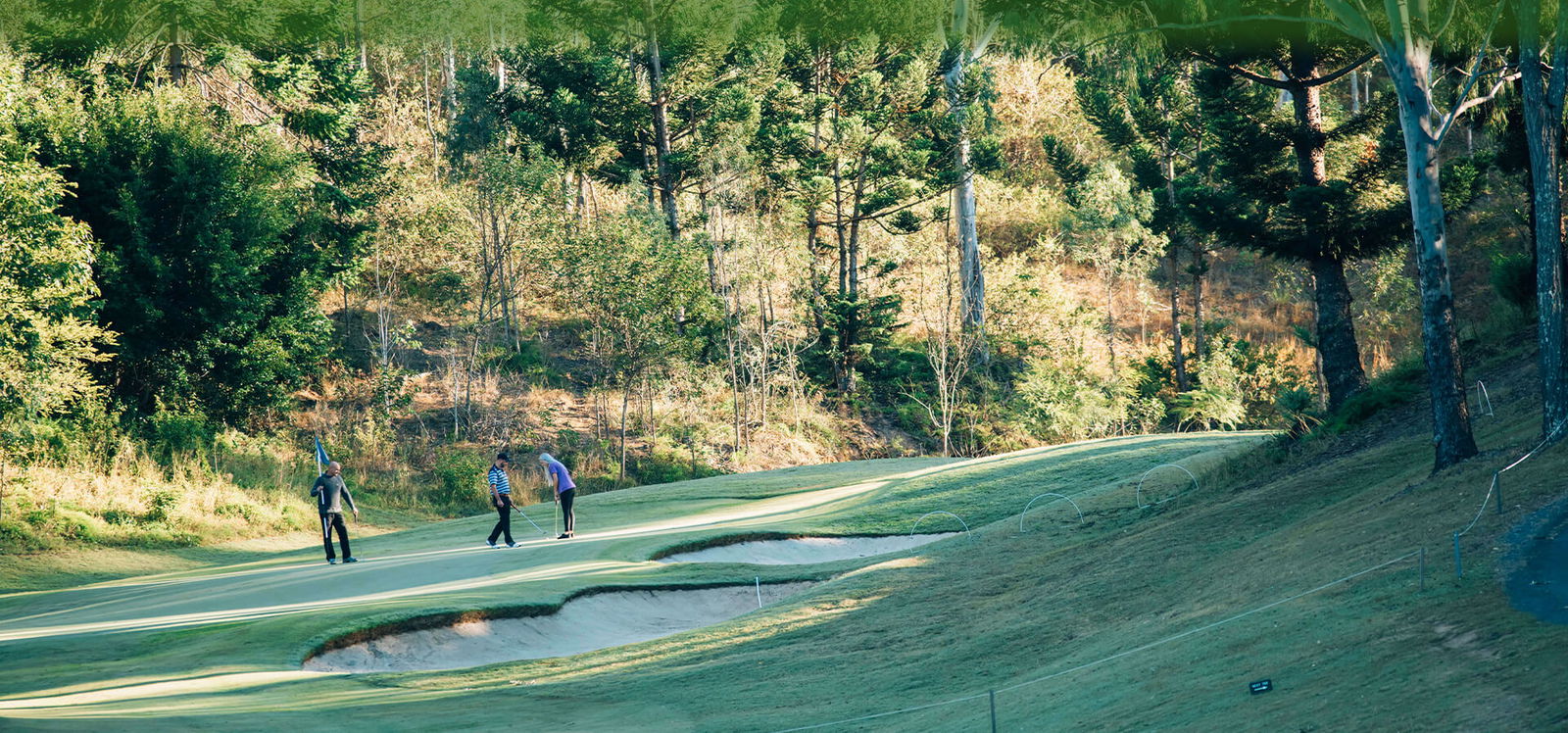 The 18 hole, par 72 championship layout weaves through rolling bushland, valleys, lakes, and woodlands. It offers dramatic elevation changes, standout holes like the 220 metre par 3 fifth (dropping over 30m to the green), and a double water - carry par 4 dubbed among the toughest on earth.